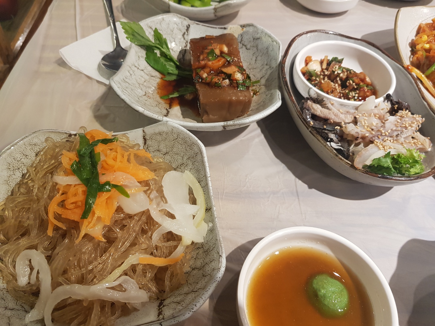 양념맛도 좋고 살도 탱글탱글 식감이 정말 좋아요~나오는 반찬도 하나하나 다 맛나구요.잡채는 달짝지근