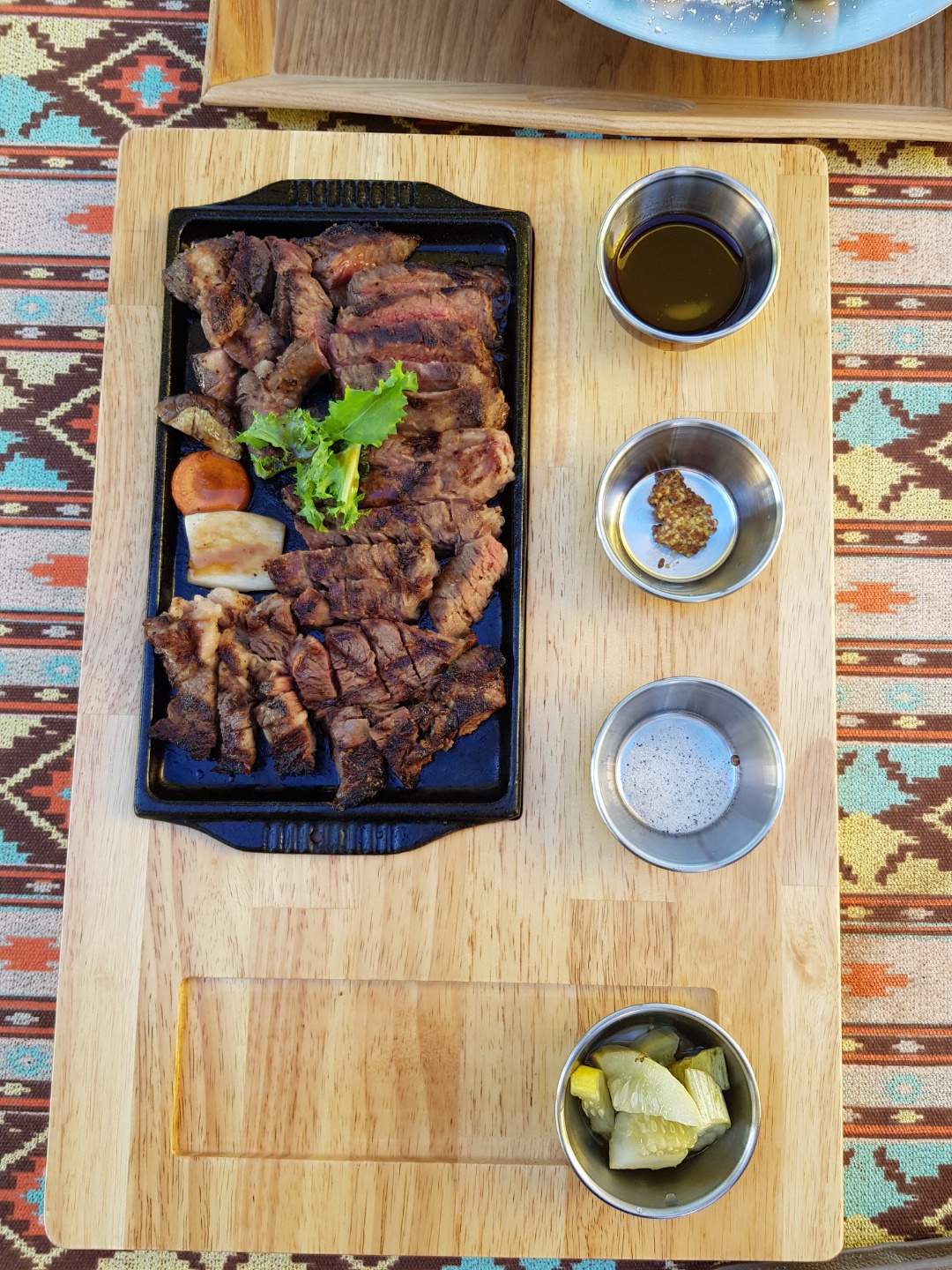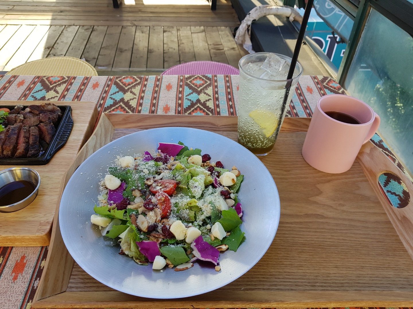 주문을 하고 10여분정도 지나니 샐러드와 음료가 먼저 나오고 잠시후에 스테이크를 직접 가져다 주셨습니다