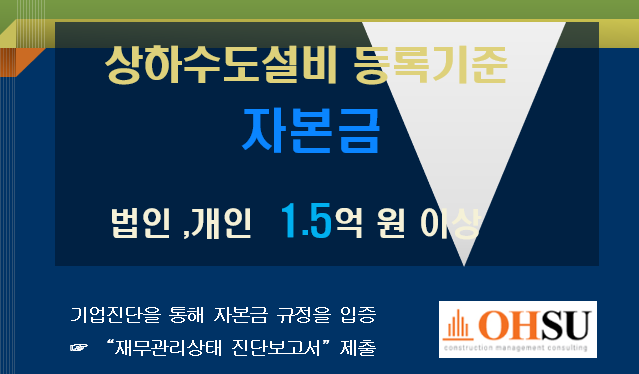 ▣ 상하수도설비공사업 등록기준 :자본금 ▣