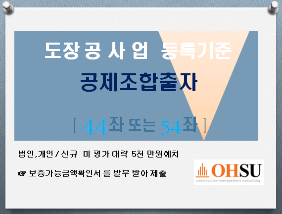 ◈주력분야 도장공사업[도장습식방수석공사업] 등록기준 :공제조합 출자금 예치 ◈