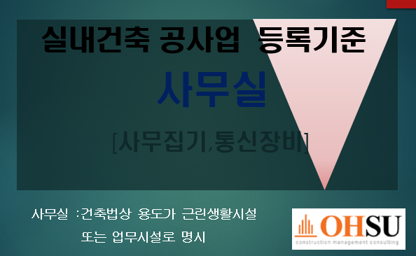 이상으로 실내건축공사면허 취득을 위해 갖춰야할 등록요건에 대해 항목별로 하나씩 설명드렸습니다
