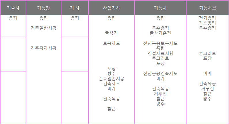 [한국산업인력공단 발급 국가기술자격증 아래표 참고]
