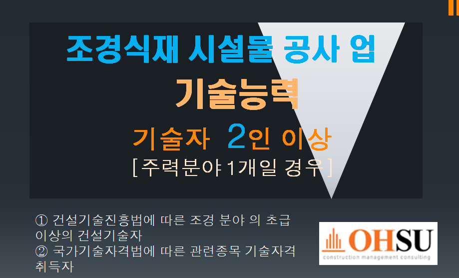 건설업길라잡이 오수건설정보입니다.단종면허인 전문건설업 중 조경식재시설물공사업에 대해 알려드리고자 합니다.