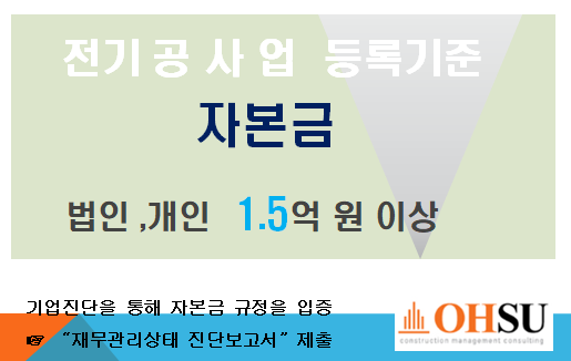 ◐ 전기공사업 등록기준 : 자본금 ◑