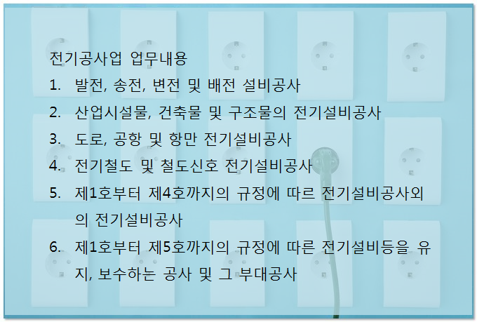 오늘은 건설업면허중 기타공사업에 해당되는 전기공사업 면허 취득조건에 대해 알아보도록 하겠습니다.