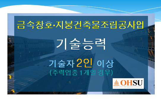 이상으로 금속창호지붕건축물조립공사업 취득을 위해 갖춰야할 등록기준을 항목별로 설명드렸습니다