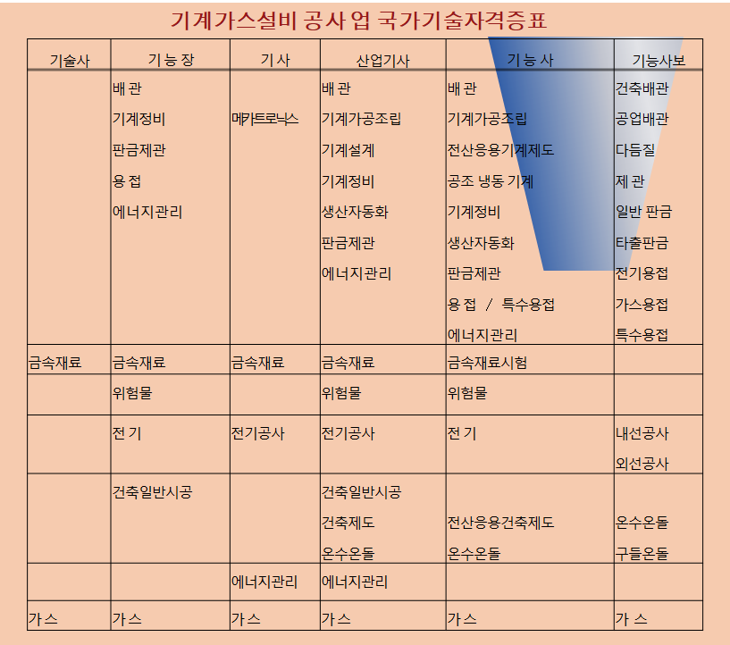 2)주력분야 기계면허는 아래표에해당되는국가기술자격증[한국산업인력공단에서발급]및 건설기술인협회