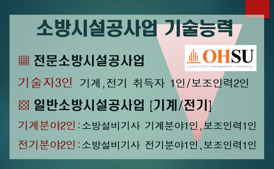 ♠보조인력: 1.소방기술사 또는 소방설비기사 자격증소유자로 기계,전기분야 취득한자 또는
