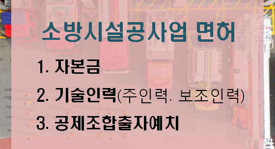 소방시설공사업 면허는 소방시설공사업법을 따르며 등록기준 인 자본금,기술자,공제조합예치의 기준을 잘