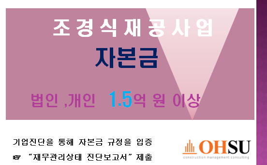 ※ 공신력있는 기관을 통해 자본금 기준 충족여부를 입증후 적격판정시 발급하는"재무관리상태진단보고서"