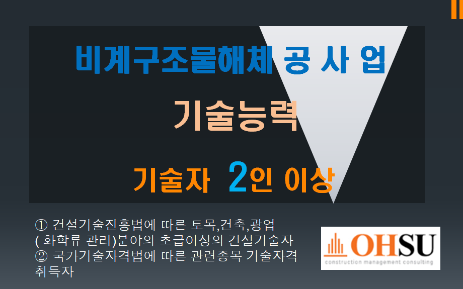 이상으로 비계구조물해체공사업에 필요한 요건인 기술자 및 그외의 조건에 대해 간략히 설명드려보았습니다