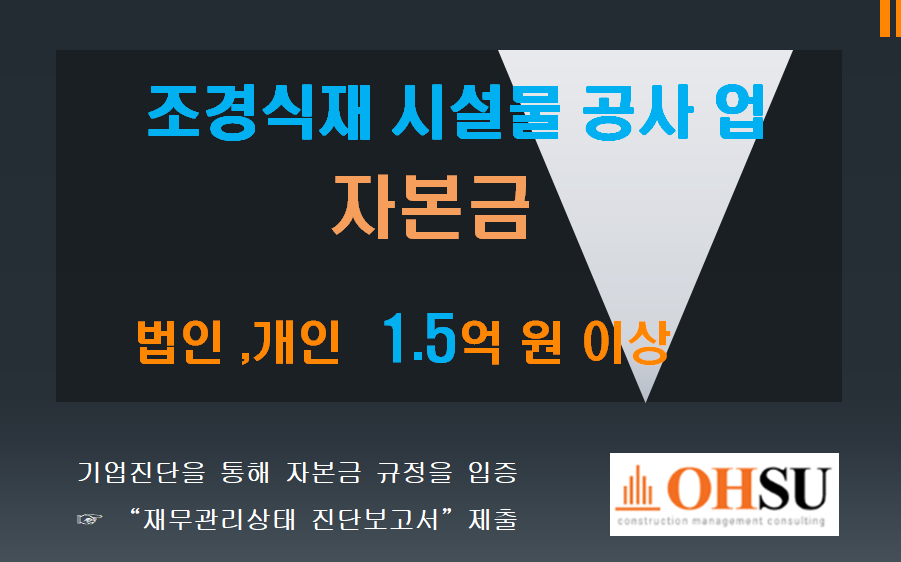조경식재시설물 면허 기술자요건을 잘 확인후 갖추었다면 그 다음으로 준비해야하는 사항이 자본금 기준 입니다