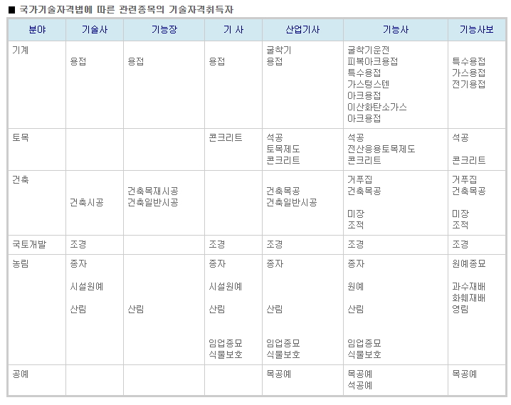 기능사 이상등급의 국가기술자격증표는 아래표를 참고하세요