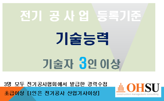 오늘은 기타공사업에 해당되는 전기공사업 면허 취득시 갖춰야할 요건은 어떠한것이 있는 간략히 정리해 드리겠습니다.