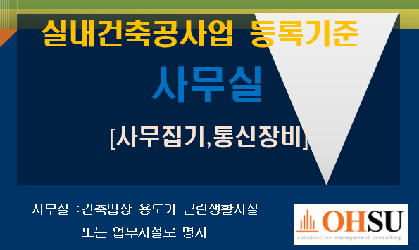1)실내건축공사업에 해당되는 국가기술자격증 [아래표 참조], 또는 건설기술인협회에서 발급받는 경력수첩일경우 건축분야의 초급이상이면 가능합니다