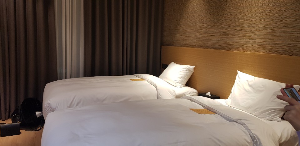 방은 크진 않았지만 깔끔하고 새로 지어진 호텔이라 그런지 모던하고 깨끗해서 좋았습니다 딸아이와 둘이서 있기에는