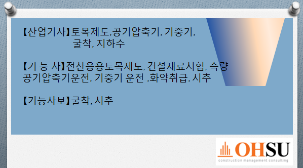 2)아래표에 해당되는 국가기술자격증 또는 건설기술인협회에서 발급받은 토목분야의 초급이상
