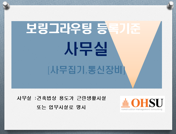 2)용도체크도 중요하므로 근린생활시설이나 업무시설 오피스텔,공장내 사무동등이 가능하며,주거용,가건물은