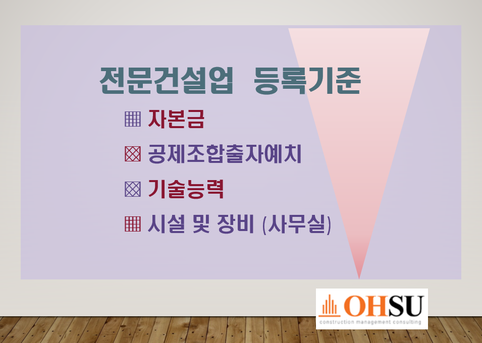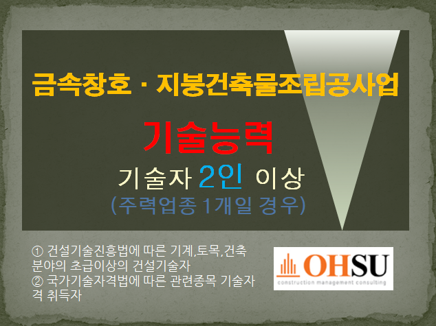 이상으로 금속창호지붕건축물조립공사업 취득을 위해 갖춰야할 등록기준을 항목별로 설명드렸습니다