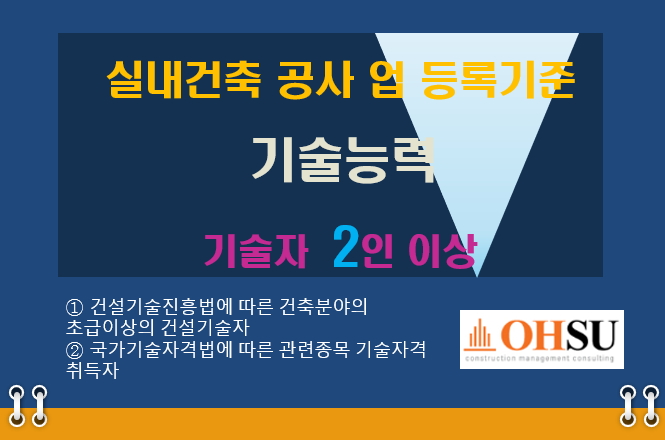 ▶ 국가기술자격증 보유자외에 건설기술인협회의 건축,토목,기계분야 초급이상 셋중 하나의 경력수첩소지자도 가능합니다
